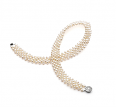 3-4mm di Perle Acqua Dolce Collana en Scollo a v Bianco