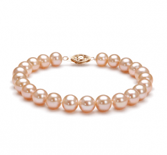 The pink freshwater Bliss Bracelet is a perfect combination that will allow you to wear warmer colors and can go great with bold white business suits and simple day to day wear. But if you are of the paler complexion tone it down and go for the more pinkish one-row quality freshwater cultured pearl bracelet in pink.