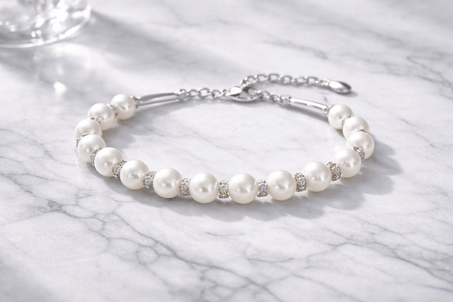 Oro e perle richiedono cure leggermente diverse, quindi devi bilanciare entrambe. Le perle sono delicate e porose: assorbono facilmente i prodotti chimici. Indossa sempre il bracciale per ultimo, dopo aver applicato lozioni, profumi e lacca per capelli. Toglilo prima di lavarti le mani o lavare i piatti. I prodotti chimici nei saponi danneggiano le perle nel tempo.